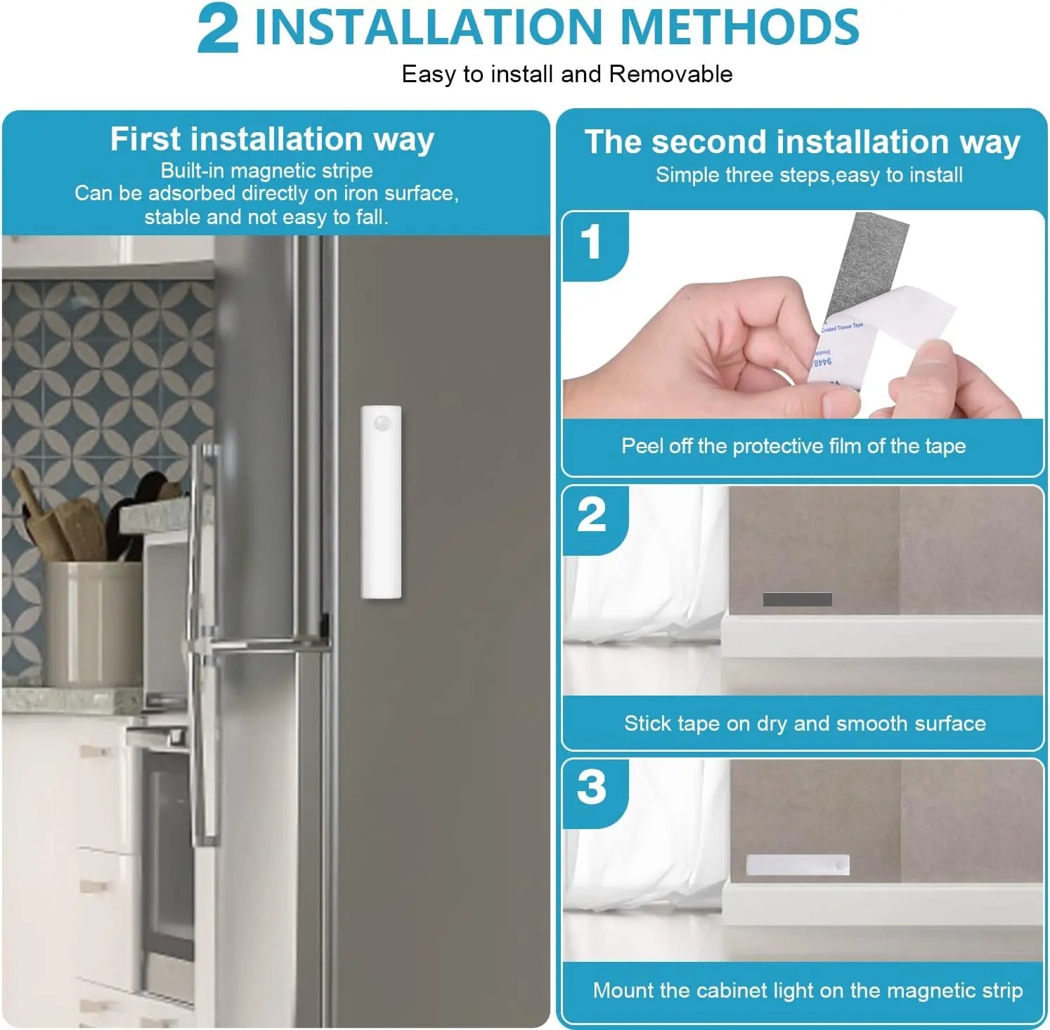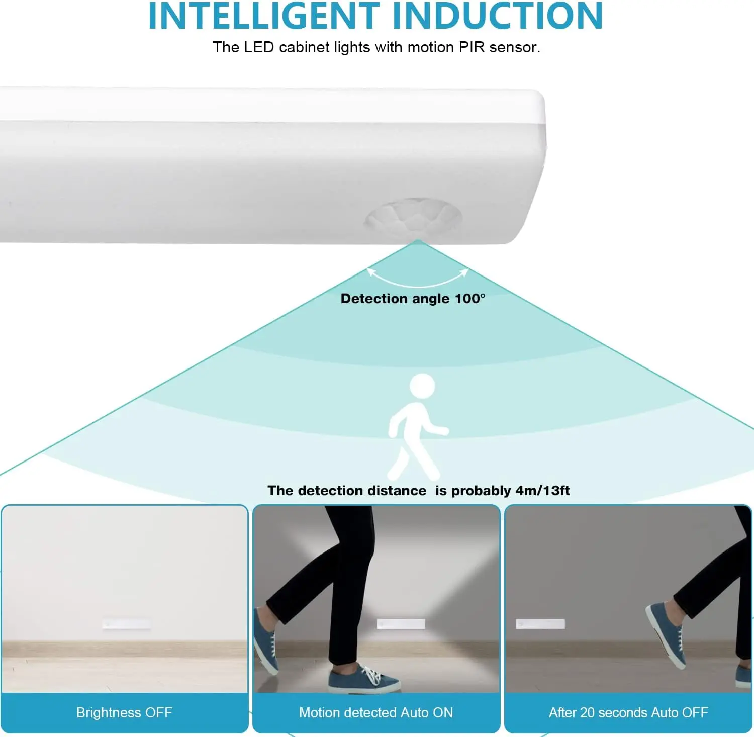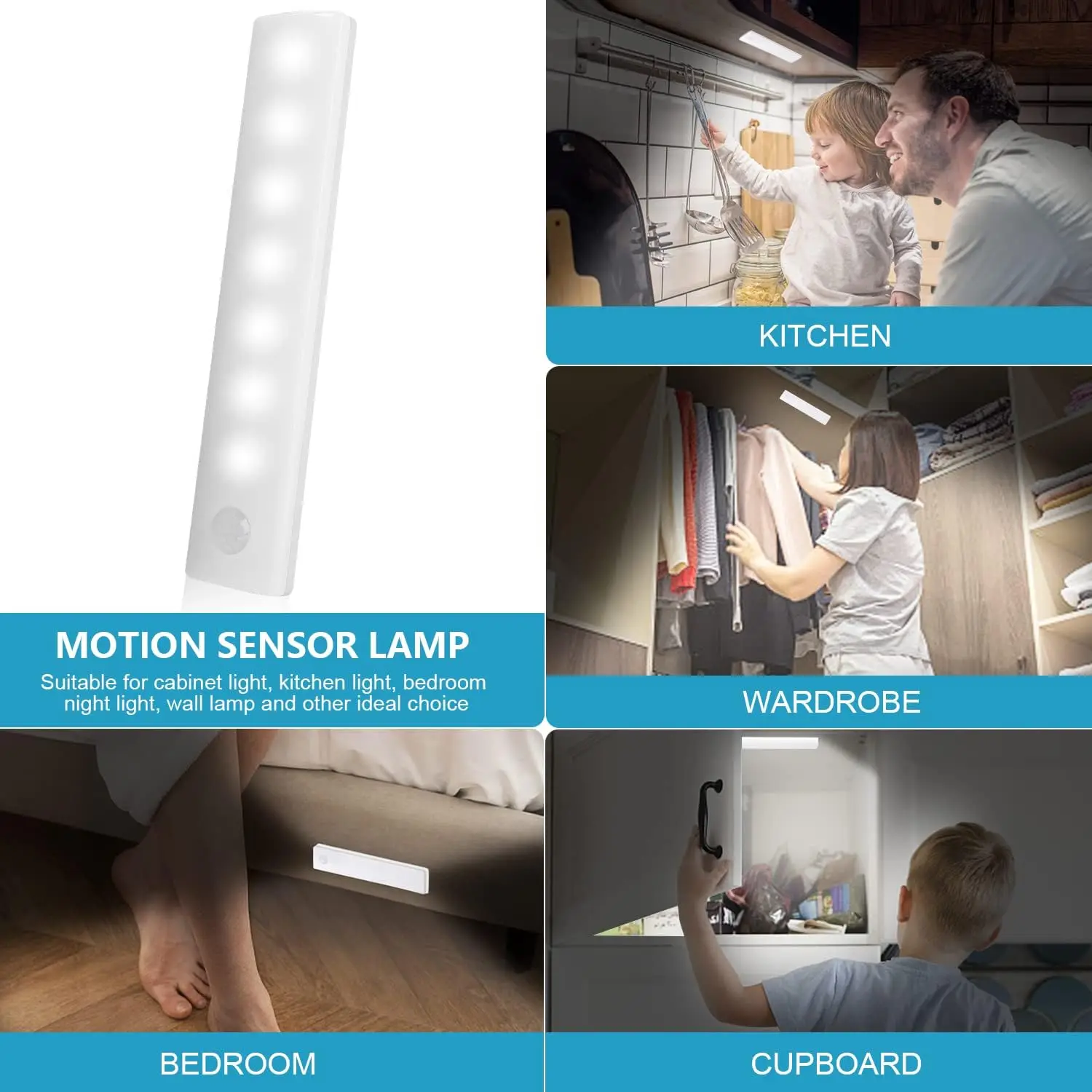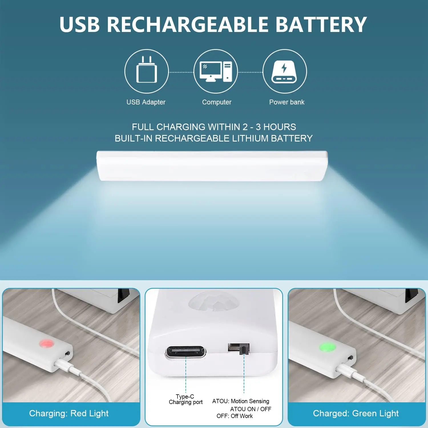3PACK motion sensor LED cabinet lighting, USB charging magnetic installation, applied to kitchen and closet, white