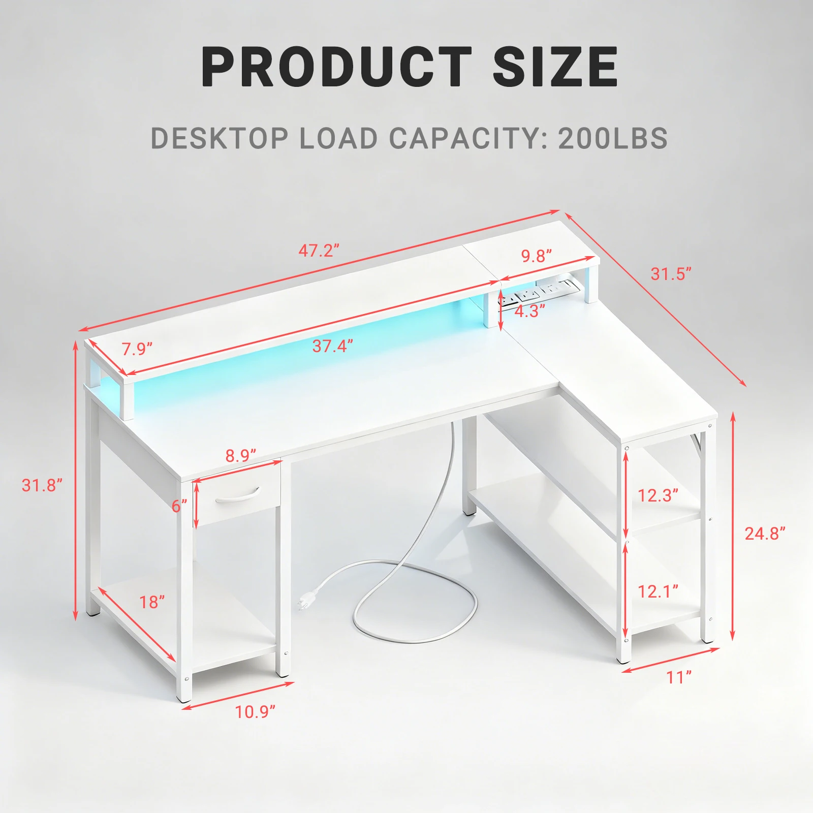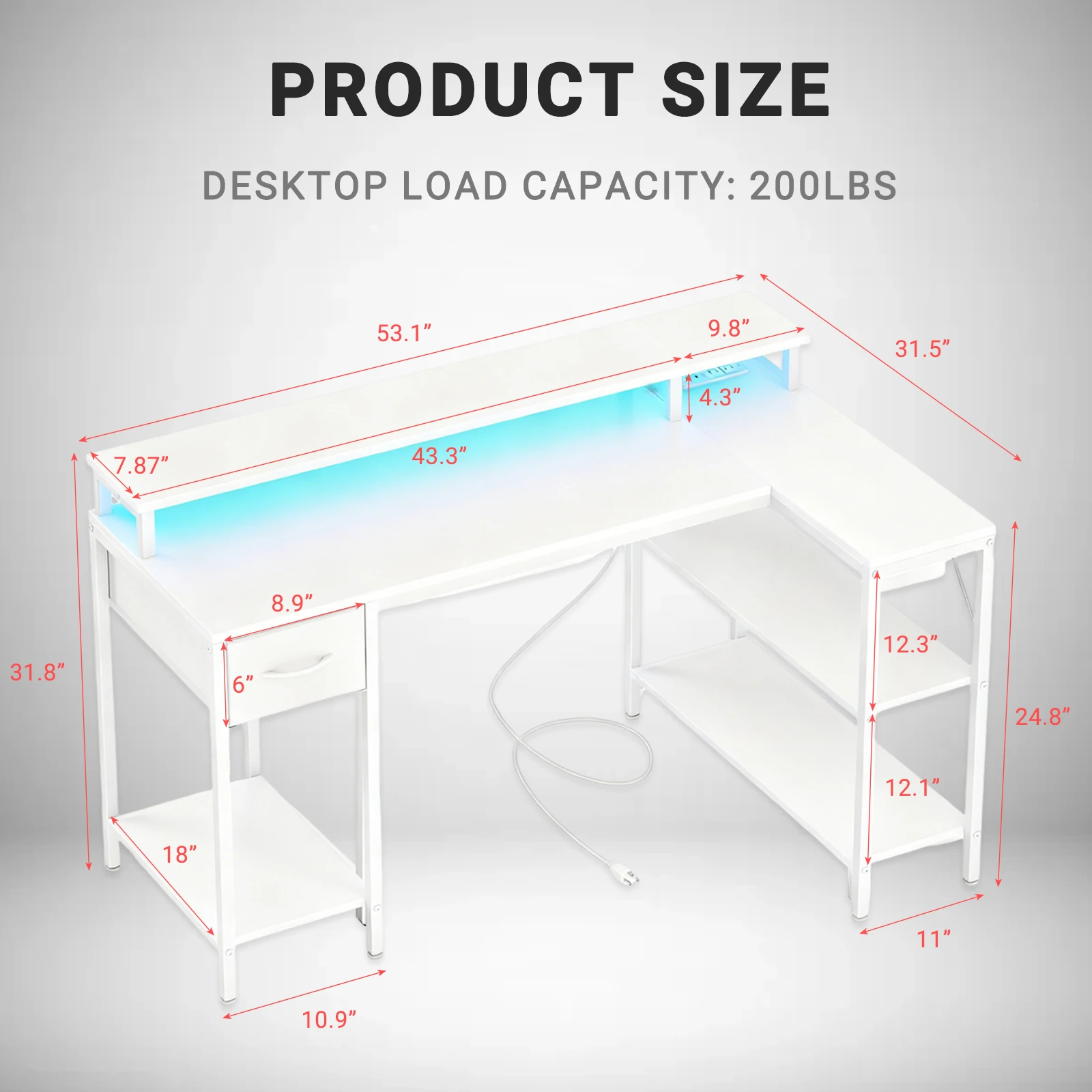 Versatile L-Shape Layout with Ample Storage: Designed for left or right corner placement, this desk includes a drawer and multi-tier shelves for organized storage. Available in 47” and 53” sizes in sleek black or white, it adapts seamlessly to offices, bedrooms, dorms, or gaming rooms.